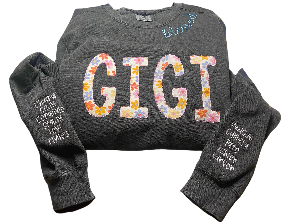 Have a special "Gigi" in your life? She needs this sweatshirt so she can proudly wear her grandkids' names on her sleeve!
